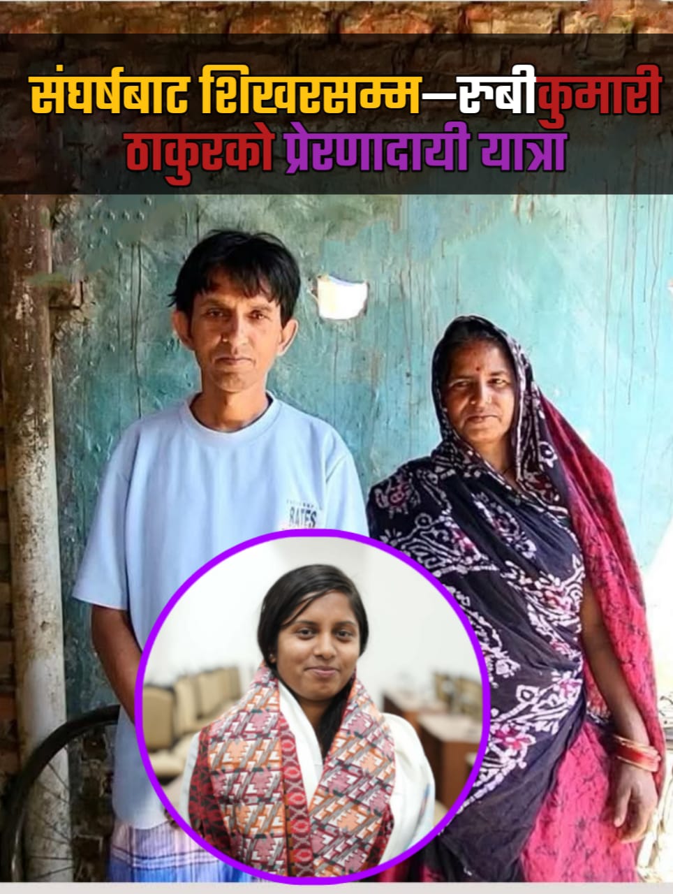 जनकपुरधाम उपमहानगरपालिका–१४ मुजेलियाको सामान्य परिवारमा जन्मिएकी रुबीकुमारी ठाकुर आज नेपाली राजनीतिमा उदाउँदै गरेको एक सशक्त नाम बनेकी छन्। आर्थिक रूपमा कमजोर पृष्ठभूमिबाट उठेर सांसद र उपसभामुखजस्तो उच्च पदसम्म पुग्ने उनको यात्रा साँच्चै प्रेरणादायी छ।