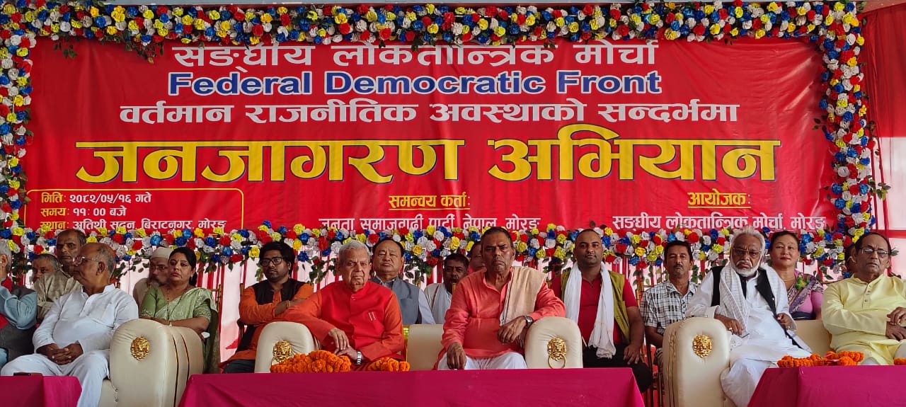 विराटनगर, १६ भदौ । संघीय लोकतान्त्रिक मोर्चाले अधिकार, पहिचान र स्वायत्तताको सवालमा एकजुट हुनुको विकल्प नरहेको..