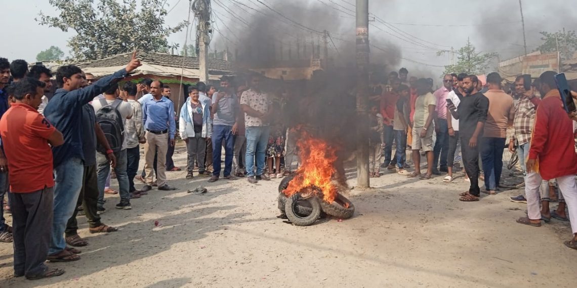 जनकपुरधाम ४ चैत । महोत्तरीको पडौल बजारमा शनिवार राति भएको चोरी घटना विरुद्ध स्थानीय व्यापारीहरु आन्दोलित..